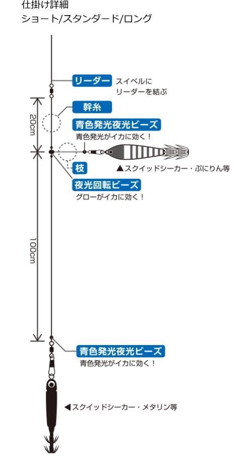 ケンサキ・ヤリイカ・スルメイカ等。青色発光ビーズがイカに効果大!