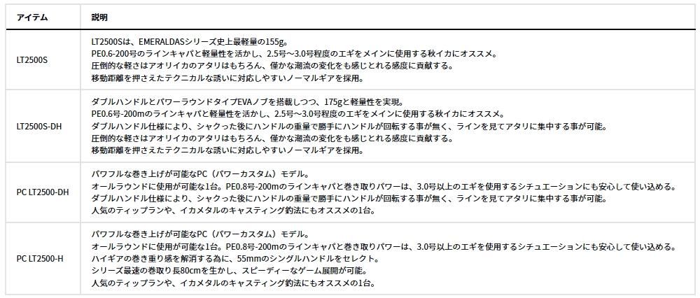 EMERALDASファンはもちろん、リールに高い基本性能を求めるエギンガーに使っていただきたいシリーズ