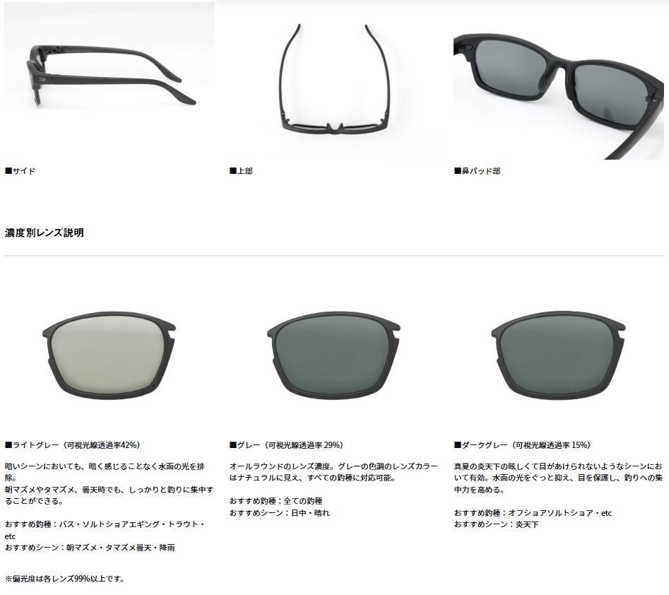 デザインについては、レンズ幅が広めになり、視野をしっかりと確保できるため、普段使いからフィッシングシーンに至るまで幅広く活用できるスクエアモデル。