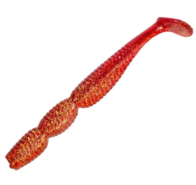 クビレ+前方と後方で形状をアシンメトリーにすることでロールアクションが追加!独特な形状のシャッドテールはロールアクション+強波動を発生させ、ターゲットに猛アピールします。クビレ部分でワームをカットすることで、アクションはそのままにサイズダウンし、5インチから4インチへサイズ感を変更可能!
