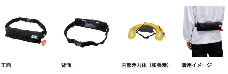 国土交通省型式承認品、小型船舶用救命胴衣 TYPE-A 膨張式PFD(水感知機能付)インフレータブルウエストベルトタイプ