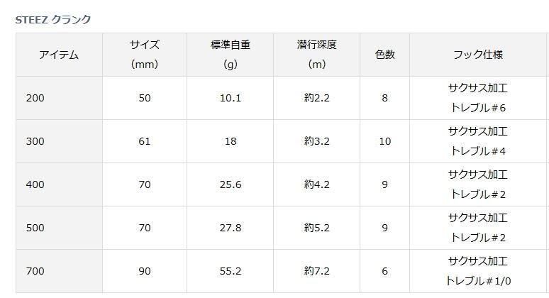 飛行姿勢、飛距離、障害物回避性能、巻き心地など一日中集中して巻き続けられる「使い易さ」を形にしたクランクベイト。それぞれのサイズに最適な重心移動システムを搭載し、向かい風など不利な状況でも風を切り裂き飛んで行ってくれる。システムクランクとして幅広いレンジ攻略が可能で、アクションもタイトに仕上げてあることから、全国どんなフィールドでも高次元で対応する汎用性の高さがある。ディープクランクになるほど引き抵抗が重くなり一日中巻き続けるのは困難であるが、STEEZクランクは軽快な巻き心地でアングラーをサポートしてくれる。クランキングの本質を詰め込んだクランクベイト。それがSTEEZクランク。