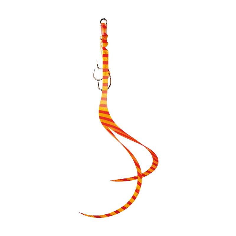ラージとスモール、2サイズ入り。なだらかなカーブを描くラージパターンは、特にスローリトリーブでの真鯛の捕食スイッチを入れることが得意なネクタイ。スモールパターンはコンパクトかつターンアングルが大きなカーリーが特徴で、スローからファーストリトリーブでもキビキビ動き、そのボリュームが海底に潜む甲殻類にマッチザベイト。