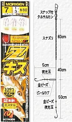 もりげん Zキス 2本針×3組入 N-512 針9号 ハリス1.5号 / 投げ釣り 仕掛け つり具 メール便可 【本店特別価格】