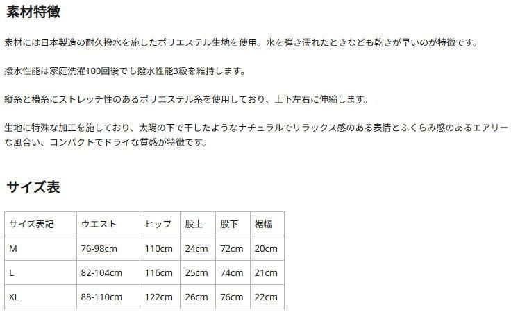 ウエストはゴム&紐の仕様のイージーパンツ仕立て、裾にはゴムスピンドル入りで、春から秋のフィッシングシーンや普段使い、汗をかく時期や小雨時など重宝するアイテムです。