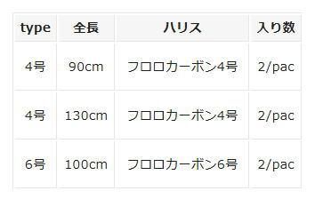 だれにでも扱い易い4号90cm、少し波っ気があり船の上下動が大きい場合に好適な4号130cm、そして仕掛けの耐久性、捌き易さ、オマツリした時の解き易さ等を考慮した6号100cmがあります。