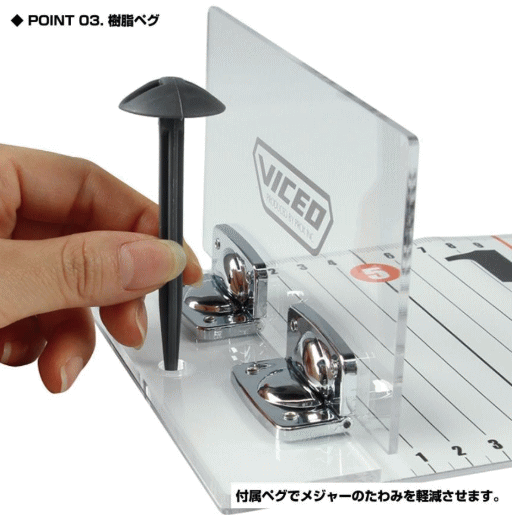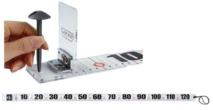 始点を正確にできるプレートとペグ2本付でメジャーのたわみを防ぎ計測時の誤差を軽減。