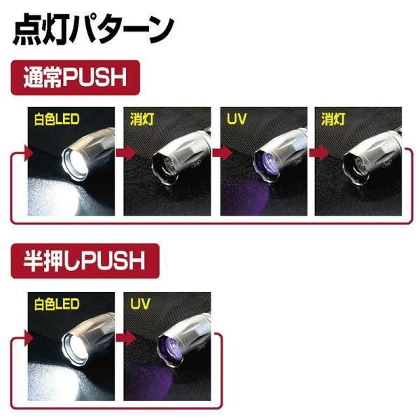 テールスイッチを1度通常PUSHすると白色LED→消灯→UV→消灯の順に切り替え。