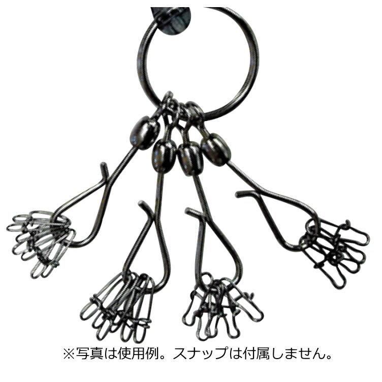 スナップをサイズ別にハンガーにかけ、ピンオンリール等にセット、ベストに装着で交換がスムースで間違いがない便利アイテム。