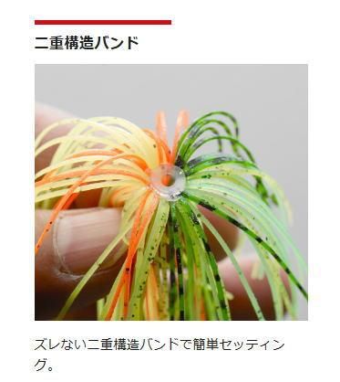 ラバージグに最適なシリコンラバーをひと工夫。ズレることなく簡単に取り付け出来るようにスカートのバンド部分を二重構造にしました。また、スカートが挟み込み式のため従来品に比べてフレアが増しており、誰でも簡単にボリューム感が出せることも魅力です。