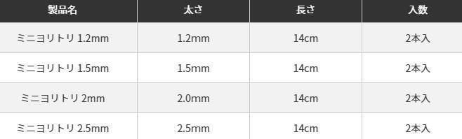 ●太さ 1.2mm〜2.5mmのラインナップ。