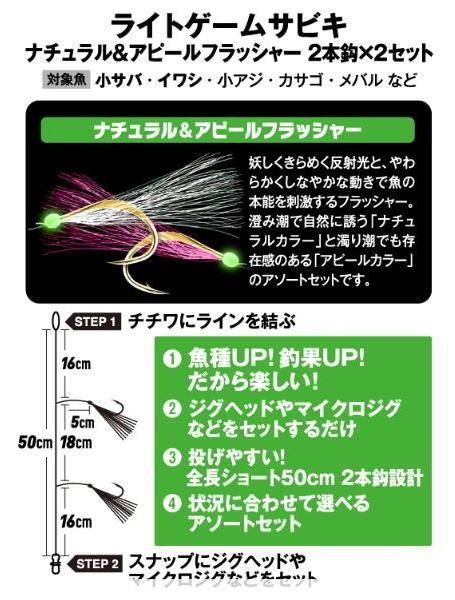 ハヤブサ ライトゲームサビキ ナチュラル&アピール 2本鈎 2セット FS705 Sサイズ / 仕掛け つり具 メール便可 【本店特別価格】
