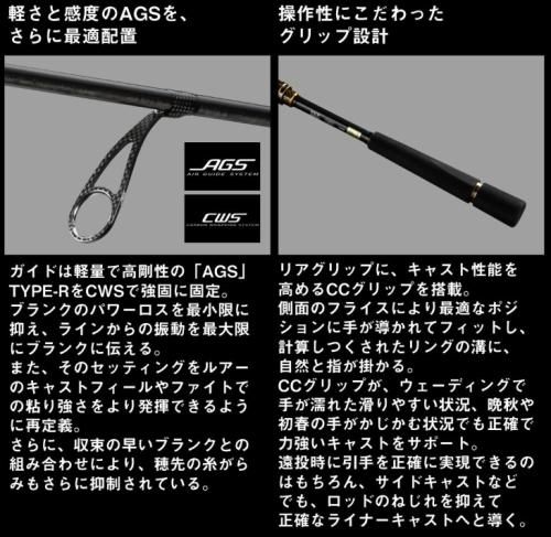 さらに、SVF COMPILE-Xナノプラス・CWS・AGSタイプR等、ダイワの最先端テクノロジーを贅沢に採用し、ロッドの基礎能力を大幅に上げている。