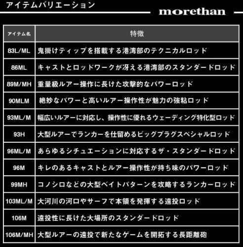 この「morethan」シリーズは、原点に立ち返り、基本性能を見直した王道のシーバスロッドシリーズ。