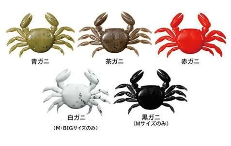 「パワーイソメ」に用いられている素材を使用し、カニを模したフォルムに仕上げました。カニをエサにして釣ることが多いクロダイ・チヌ、カサゴ、キジハタ、アイナメなどに特に効果的。穴釣り、ブッ込み、落とし込み(ヘチ釣り)など様々な釣りに対応し、ブラクリやジグヘッドにつけてもOK。MとL、BIGの3つのサイズに青ガニ、茶ガニ、赤ガニ、白ガニ(M・BIGのみ)、黒ガニ(Mのみ)のカラーをラインナップしています。