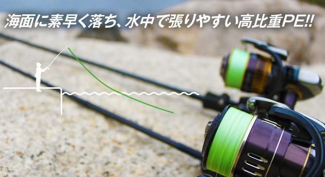 ライトゲームはラインコントロールが重要。多少の風でも素早く水面まで落ちる高比重により、コントロールのしやすさ、 アタリをダイレクトに伝えるための張りやすさ、安心の強度による使いやすさを実現。 ブレイドながら極めて真円になるようオリジナル設計を施し、可能な限りのトラブルを軽減。 水馴染みが良く糸を張った状態を保てることで「状況把握」に長け、軽いルアーでも水中イメージをしっかりと伝えてくれます。 繊細な釣りの展開にぴったりな新感覚のPEラインです。