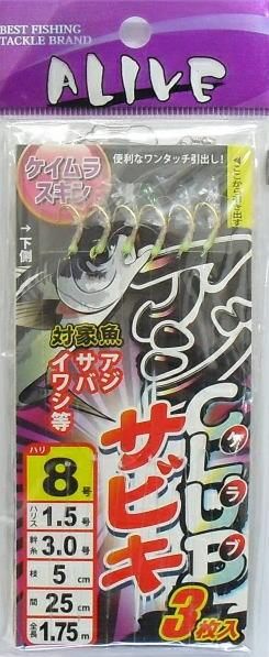 アライブ アジCLUBサビキ 3枚入 ケイムラスキン KMY-1624 針4号 ハリス0.6号 幹糸1号 / 仕掛け つり具 メール便可 【本店特別価格】