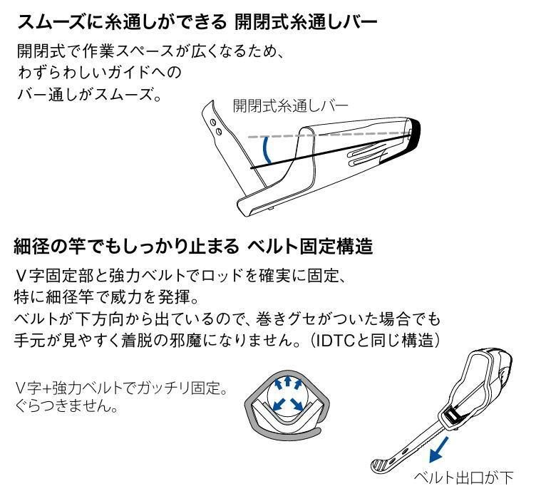 ・細径の竿でもしっかり止まる新ベルト固定構造を採用