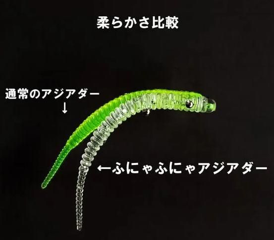 エラストマー素材ではなく通常のワーム素材を使用しているためフックセットもしやすく、扱いやすさは従来のアジアダー同様。