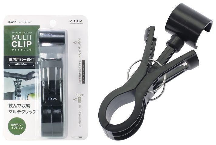 ●φ25〜30mmまでの車内用バーに取付可能なマルチフック。