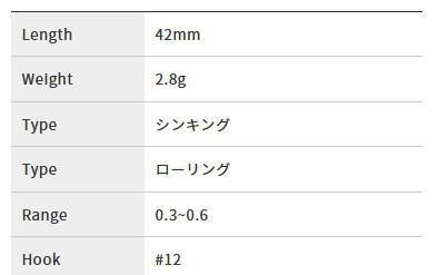 トト48Sをベースにマイクロミノーが苦手とするキャスト性能と水絡み性能を向上させたアップデートモデル、トト48ヘビーシンキング。単なるウエイトの追加では無く、リップは水噛みを重視した立ち気味のスクエアリップに変更。