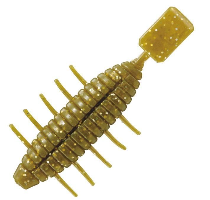 水平につけられたスクエアテールは水を受けて落ちる時に水押しを強調。アクション時においても、動いたり、動かなかったりとエビシャッドから受け継いだ意図しないイレギュラーな動きが釣れる要素になっています。高比重ノーシンカーにとっても重要な水押しの定番ボディだけでなく独特なテールで抜け押す水押しを付随させました。