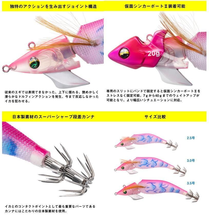 仮面シンカーボート2の装着が可能なのでティップランにも対応。ヒット時にはジョイント部がイカの動きに追従するのでバレも軽減。