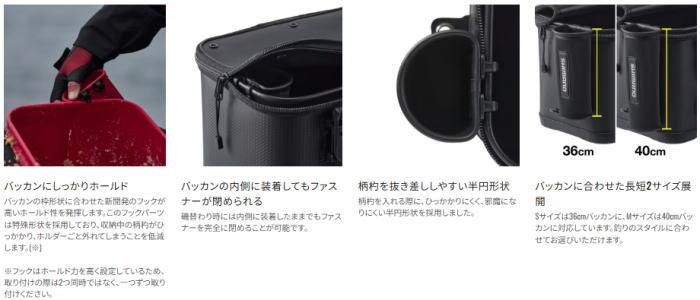 バッカンを置くのに不安定な斜めの磯や柄杓を落とせない潮の流れが速い遠征時の離島など、どんなシチュエーションでもしっかりバッカンにホールドできる柄杓立てが登場しました。新開発のフックがバッカンのフチにぴったりフィットして大切な柄杓を落とさない磯師の便利アイテムです。