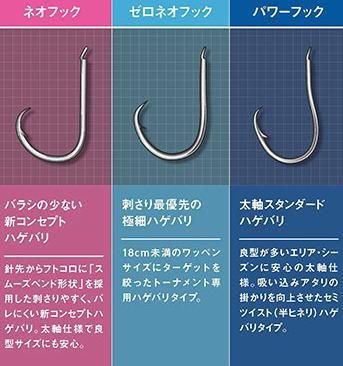 針はスピード、パワースピード、パワーマルチ、パワーフック、ワイドフック、ネオマルチ、ゼロネオフックの7種類の針をご用意