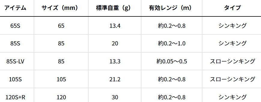河川やサーフ・磯・干潟などのシャローエリアや水面直下を簡単に攻略できるデイ&ナイト対応シンキング&スイミングペンシル。ジグ並みに飛距離が出るので、ミノーでは届かない遠くのボイルも射程範囲に収める。コノシロ・落ち鮎・イワシ・イナッコ・ハタハタ等様々なパターンに対応。アクションは流れに敏感かつ不規則なスラロームアクション。