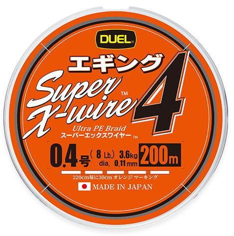 デュエル スーパーエックスワイヤー4 エギング 150m 0.8号 WOM ホワイトオレンジマーキング / PEライン 道糸 つり具 メール便可 【本店特別価格】
