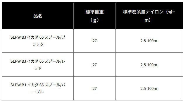 BJ イカダ 65専用のオプションスプール。3色展開で好みに合わせたドレスアップが可能。