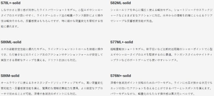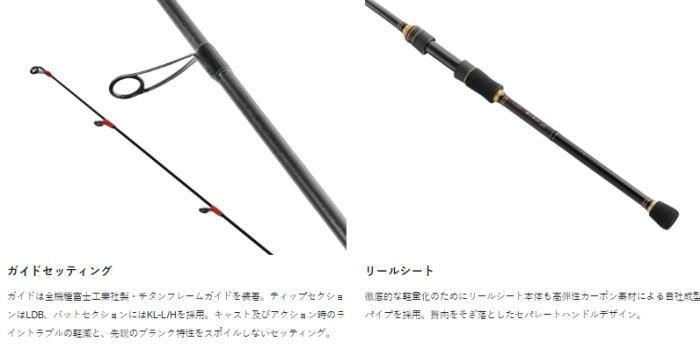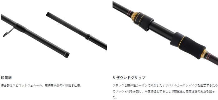 軽量化と反響感度・荷重変化察知能力を極限まで追求し開発。本体チューブラーのメインマテリアルに高強度高弾性素材TORAYCA(R)M40Xを採用。強度確保と驚異的な軽量化を実現。オリジナルカーボンパイプ型リールシートをリザウンド構造で搭載することで、クリアで高い反響感度を獲得しています。全機種カーボンソリッドティップモデルのラインナップです。