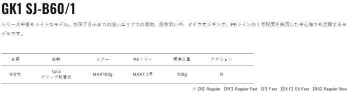 商品情報 メジャークラフト MajorCraft ジャイアントキリング1G スロージギングモデル GIANTKILLING / ロッド 船竿 青物