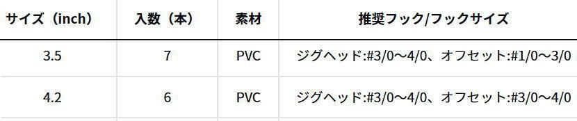 目玉付きのリアルな外観はそのままに、多様化が進むリグへの対応力を強化。さらに、貴重なバイト時にボディが折れ曲がりやすいソフトマテリアルを採用し、スムーズなフッキングを実現した。ハイプレッシャー化が進むフィールドでも通用する実釣性能を高めた、現代のスタンダード・シャッドテールワームである。