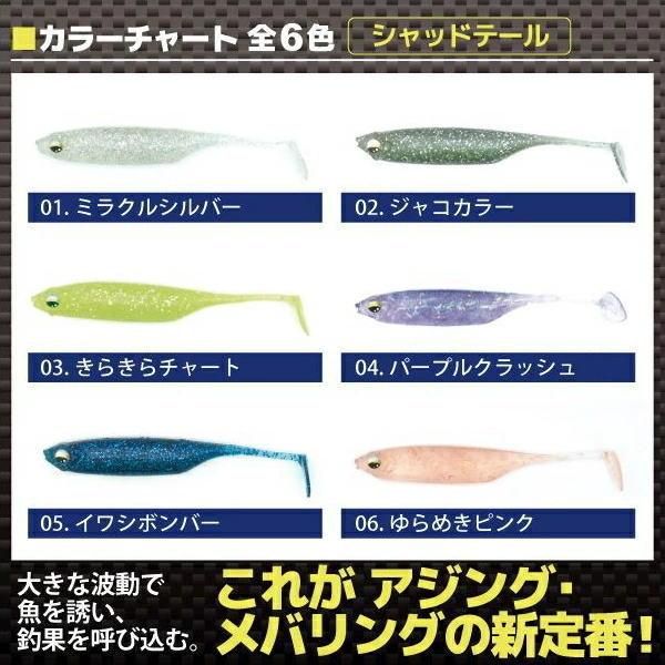 大きな波動で魚を誘い、釣果を呼び込む! ! メインの対象魚アジ・メバル・カサゴなどの根魚や小型の青物と幅広く狙えます。軟質エラストマー素材を採用することにより、針のズレを軽減し、長時間のバイトタイムを実現! 独自のボディ形状で自然な動きと波動を演出し、魚のバイトを誘います! !