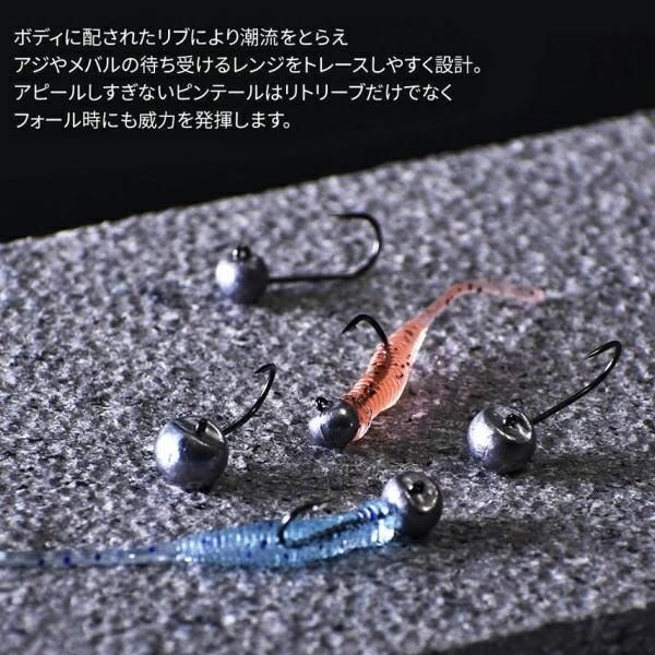 魚に「エサ」だと認識させる一口サイズのフォルムがライトゲームにおける様々なターゲットへのアピールを可能にし捕食行動へ導きます。