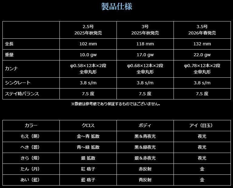 重 量:2.5号≒10.0gw 3号≒17.0gw