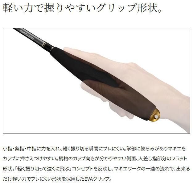 ファイアブラッド コンペエディション遠投ヒシャクで提案した 「腕を途中で止めずに振り切るスタイル」をさらに進化させたフラッグシップモデル。手首や肘に負担が少ないため、安定した遠投を容易にしてくれる。握りやすくブレにくいEVAグリップ、エサがまとまりやすく回転がかかる軽量チタンカップ、しなって遠くまで飛ばしてくれるシャフトなど、柄杓の各要素を突き詰め、遠くまで軽い力で正確にマキエをコントロールすることを目指した。