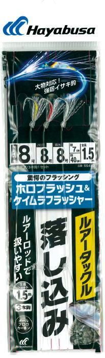 ハヤブサ ルアータックル落し込み ホロフラッシュ&ケイムラフラッシャー 3本鈎 SS443 針11号 ハリス16号 / 仕掛け 釣具 メール便可