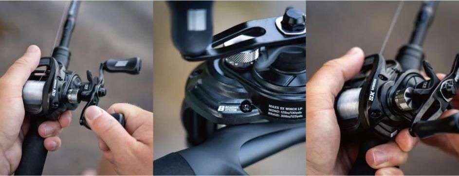 MAX5 SX WINCHは、ZENON、Revoと受け継がれてきたエルゴノミックデザインコンセプトを33mm径に継承したハイコストパフォーマンスシリーズのローギア巻物特化型モデルです。ピンロック式サイドプレートでサイドプレートの落下を防ぎます。PowerDisk™ドラグシステムを採用し、最大ドラグ力7kgを実現。90mmのアルミベントハンドルには、一体成型されたソフトタッチノブが採用され、快適なグリップとスムーズな巻き心地を実現します。