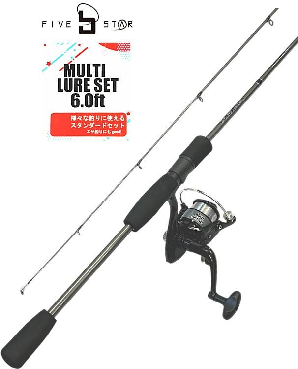 ルアー入門セット ファイブスター マルチルアーセット 6.0ft ガンメタ / ロッド+糸付きリールセット