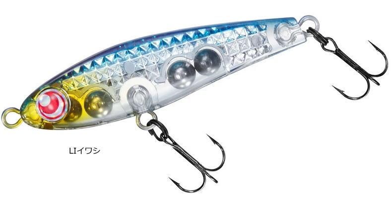 沖のデカメバルを攻略するぶっ飛びシンキングペンシル。50mmのボディには、アクションが破綻しないギリギリまでウエイトを詰め込んだ。また、空気抵抗となるボディの凹凸を無くし、テールを細く絞ることで遠投性能を最大限に高め今までの同サイズでは投げ切れなかった場所への攻略を可能にした。アクションはリトリーブの速さで変化する2WAYアクション。スローリトリーブでは、ハイピッチロールとボディのフラッシングでアピールし、リトリーブスピードを上げればウォブルを伴ったロールアクションで広範囲にアプローチできる。フォール中はボディが揺れながら落ちるシミーフォールでバイトチャンスを逃さない。体高のあるフラットサイドボディは弱いアクションでもしっかり水を押し、ロールアクションによるフラッシングがメバルへ強烈にアピールする。