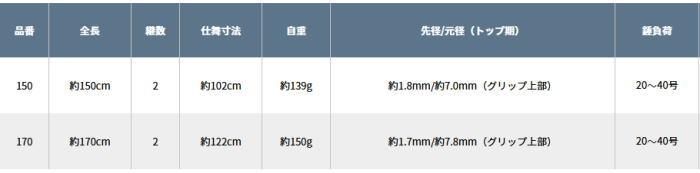 ■170…全長170cmのオールマイティな設計でライトアジ釣りに最適なバランスを実現。食わせやすくバレにくい6:4調子を採用し、アジの繊細なアタリにもスムーズに対応。低弾性カーボンチューブラ素材がしなやかで柔軟な曲がりを生み出し、魚の引きをしっかりと受け止めます。