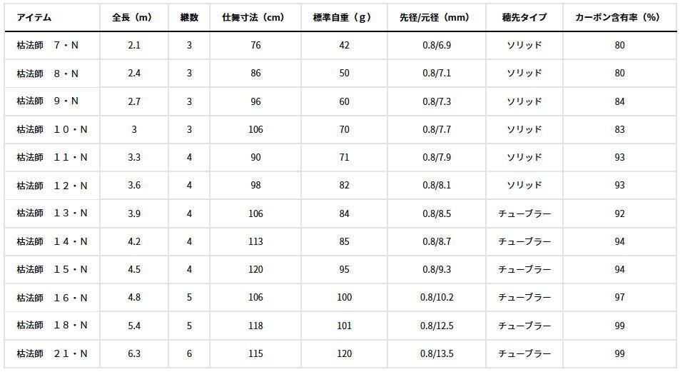 五代目や六代目の枯法師と今回の七代目の違いを一番感じやすいのが、短尺といわれるこのアイテム。その違いをひと口でいうと、手にした時のしっとりとした印象とグリップから曲がる感覚。しなやかさを求めると弱くなり、調子を求めると張りが出てしまう短尺ならではのジレンマを克服し、結果、手にした瞬間、中尺や長尺と同じように枯法師らしい、いい意味での重さとしなやかさを実現した。