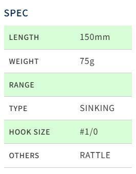 リップレス&独特のフォルム+75gのウエイトが生む飛距離は想像以上。そして、JB150-Sの水平フォールスピードもbabyfaceが独自に導いた設定。