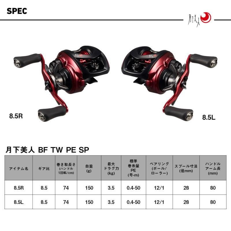 商品情報 ダイワ DAIWA グローブライド 月下美人 BF TW 8.5R PE スペシャル PE SPECIAL / ベイトリール リール ルアー バス