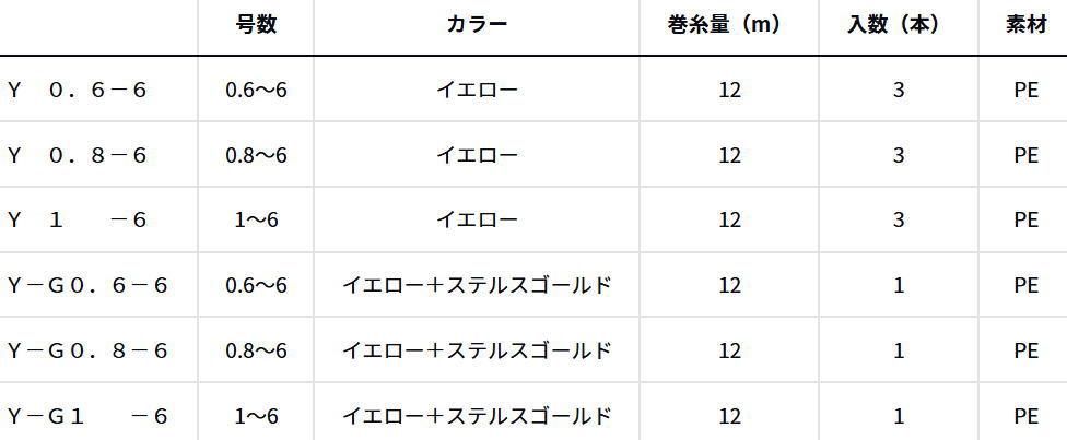 細糸化ブームにより、ラインナップも充実。 テーパーエンドは、強度安心の6号で設定。