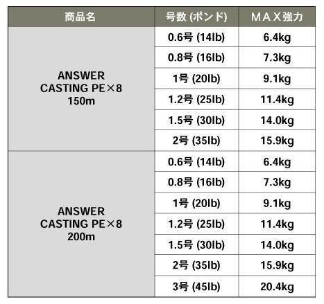 商品情報 ゴーセン GOSEN ANSWER CASTING PE×8 / 道糸 ライン PEライン