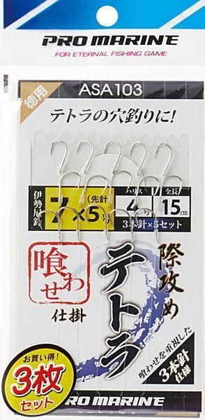 穴釣り仕掛け プロマリン 際攻めテトラ ASA103 喰わせ仕掛 3本針 お買い得 5本×3枚セット 6-3号 / 釣具 メール便可